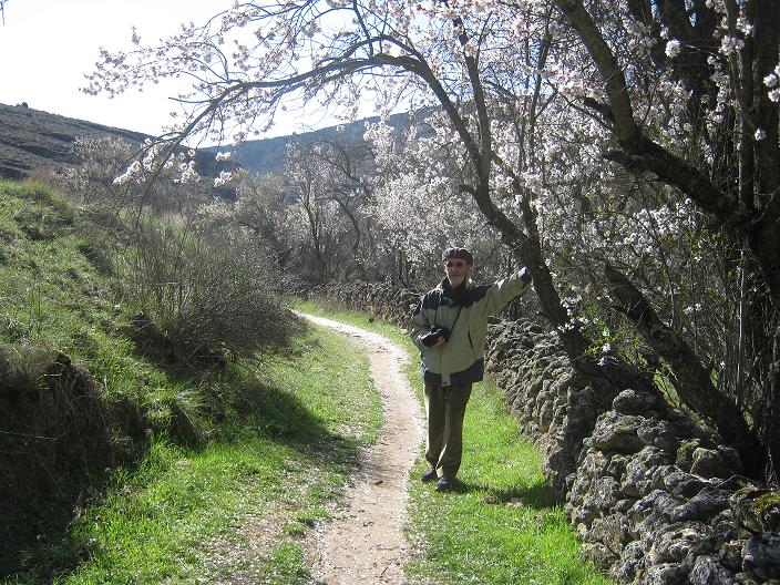 Por un sendero que discurre al lado del río y en el que apenas hay espacio para el río, el sendero, los álamos de ribera y unas paredes rocosas, verticales, impresionantes, de 60 a 80 metros de altura, donde hacen sus nidos los buitres leonados, las águilas, los cuervos, los quebrantahuesos y alguna otra especie que se me escapa, el silencio sólo roto por el graznido que te devuelve, en eco, los paredones laterales y que se mezcla con el murmullo del río y con las esquilas lejanas de las ovejas que pastan en lo alto, y te envuelve y te transporta y te conquista… ¡Qué buena cura anti estres y qué maravilloso y majestuoso el vuelo de los buitres…!