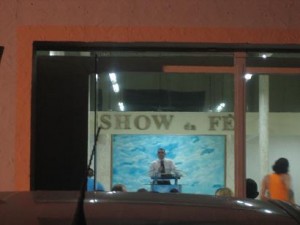 - Un predicador enganha a sus fieles con palabreria barata.