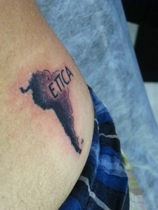 Mucha gente me ha dicho, aquello de «de este viaje te acordarás toda la vida», pues bien, ahora le añado un motivo más. Me he tatuado cerca del culo un mapa de Sudamérica con la palabra Épica encima. Para hacerlo menos obvio he decidido usar la letra π (PI) en medio, así que la grafía queda más o menos así: Éπca. Me gusta.