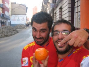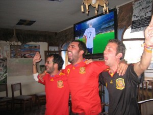 Respecto a la celebración que hicimos para el pase a la final, tengo que decir que lo dimos absolutamente todo. Desde la hora del partido (14,30 aquí) hasta bien entrada la madrugada. Uno de los momentos cumbre se produjo cuando entramos a un bar holandés al ritmo de «a por ellos, oé», cada uno con una naranja en la mano: «Esto es lo que vamos a hacer con vosotros este domingo»: