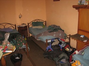 Me levanto por la mañana, a las 11 en punto, de mi cuarto: una habitación con tres buenas camas, con baño compartido en un hostel bastante correcto, por la que pago 30 Bolivianos la noche, es decir, 3,40€.