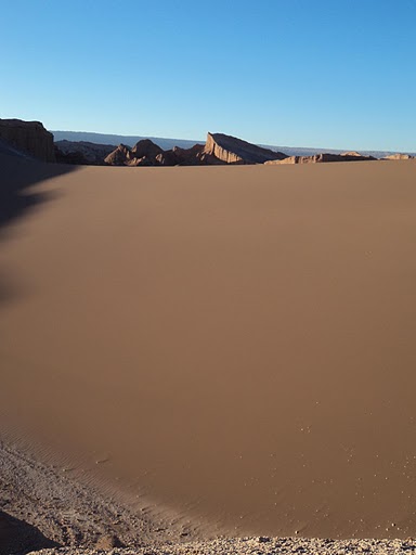 Entonces, ¿no te gustó Atacama? Evidentemente que me gustó, puesto que es un lugar indescriptible, por un lado un secarral en forma de llanura que no te alcanza la vista, por otro unas montañas hechas de las formas más caprichosas, volcanes de forma cónica de más de 6000 metros presidiendo la estancia, ni rastro vegetal en parte ninguna, lugares más parecidos a la luna que a la tierra, en definitiva, un paraje maravilloso.