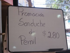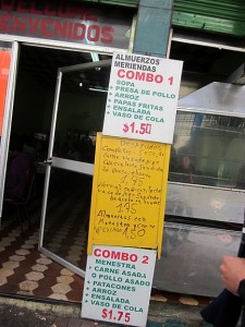 El típico almuerzo. Precios en dólares americanos, para que se hagan una idea.