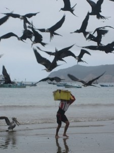 Finalmente, otra vez en tierra firme, quedaba dar el asalto definitivo al país vecino y completar la gesta. En primer lugar, hice noche en Capurganá, un pueblo que parecía talmente sacado del imaginario que pueda tener el personal sobre el Caribe. Un pueblito donde reina la calma, todo el personal circula sin zapatos y sin reloj, los niños se bañan en el muelle, algunos hombres pescan en diminutas embarcaciones mientras algunos viejos les aconsejan en un ininteligible castellano desde la orilla, la música sale con demasiada potencia de todas las puertas de los bares donde los lugareños matan las horas bebiendo cerveza, aunque bien podrían haber bebido Malibú si no fuera un fraude de bebida. Mucha gente dormita en hamacas, otros preparan un toldillo pues siempre va a llover. Los dependientes de las tiendas las vigilan sentados en la acera de enfrente y no tienen demasiada prisa en levantarse si aparece algún improbable cliente.