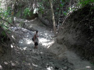 Para seguir hacia mi meta, tenía que caminar entre la selva durante unas dos horas hasta llegar a Sazpurro, el último rincón de Sudamérica. El paseo, físicamente exigente, fue de lo más placentero aunque el barro, presente en todo el recorrido, dificultaba la marcha. Una vez, alcanzado el último pueblo, una versión reducida en espacio y aumentada en caribismo de la anterior, solamente faltaba dar el asalto definitivo.