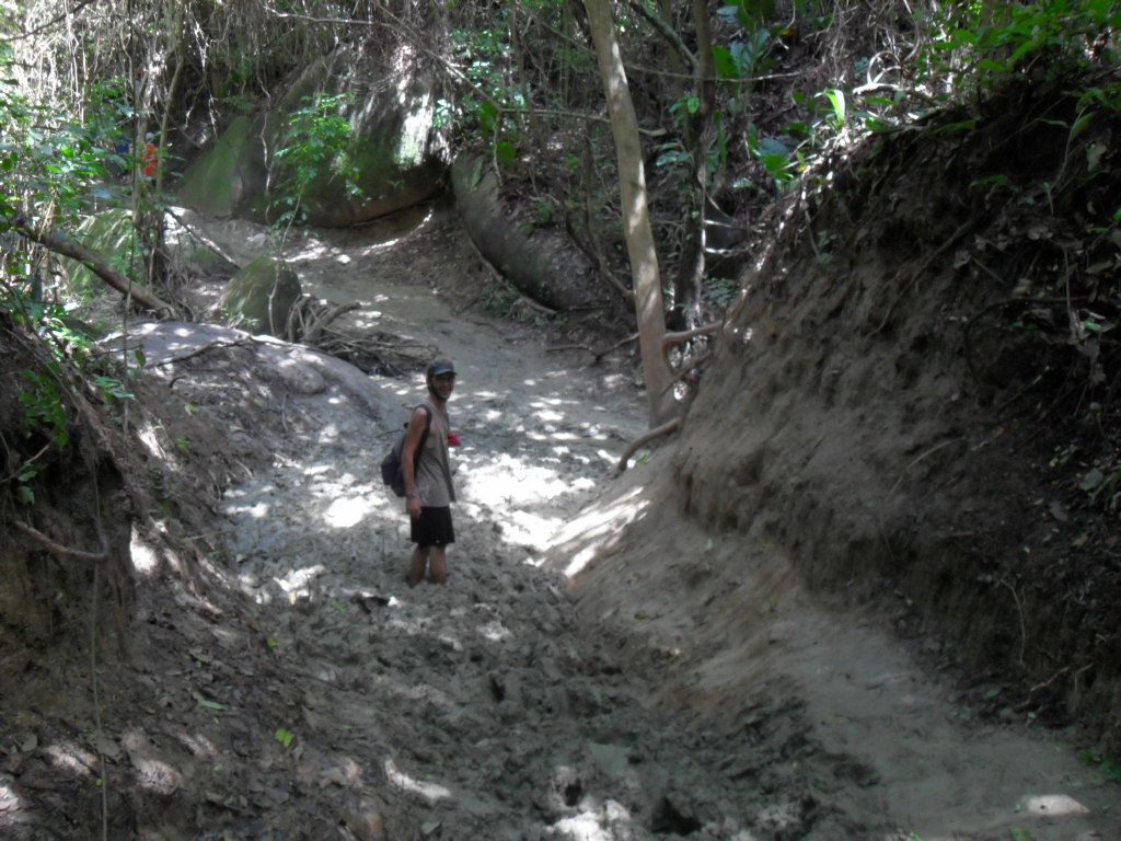 Los senderos que nos tenían que llevar hasta nuestro destino, no eran precisamente caminos de rosas: Colombia es un país muy verde, producto de que la lluvia -estamos en clima tropical- hace presencia prácticamente a diario; por tanto los caminos estaban verdaderamente enfangados.