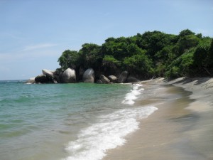 Y tras caminatas de notable exigencia fuimos presenciando las maravillas de las autonombradas mejores playas de Colombia: playas vírgenes con largos tramos de arena, culminados por impresionantes rocas, palmeras circundando todo el arenal, y selva atlántica rodeándolo todo y en lugares juntándose incluso con el mar.