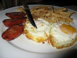 Y esto toma tintes melodramáticos cuando te enfrentas, por ejemplo, a un huevo frito con patatas, chorizo y torreznos. ¡Sin pan! La palabra indignación se queda muy corta. Les invito a que hagan la prueba en sus casas y verán como automáticamente se opoderará de ustedes un sentimiento de impotencia tal, que hará que tengan que dejar de disfrutar del plato con una mayor relación de placer/sencillez. Cada bocado, cada trozo de huevo frito es un martirio para el cerebro. Y no quiero deciros el final del plato cuando ya has acabado. Imaginad el liquidillo del aceite de las patatas, de los torreznos, la yema del huevo que ha escurrido, el aceitillo rojizo del chorizo… y no poder huntar un pedazo de pan crujiente y meterte las yemas de los dedos para relamerte al llevartelo a la boca. Por mucho menos que eso, han sucedido asesinatos.