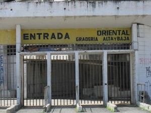 Un esforzado barranquillero dormita en la entrada del estadio más grande de Colombia, sede del Júnior de Barranquilla.