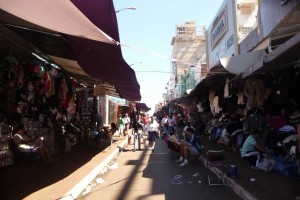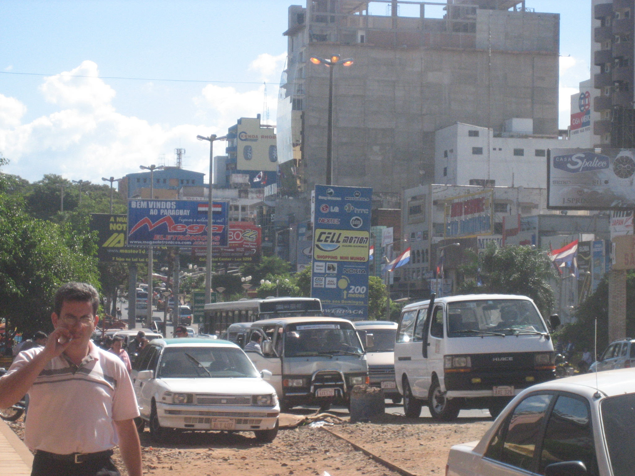 Llegamos a Ciudad del Este, el pueblo fronterizo y nada más salir del autobús fuimos avasallados por centenares de vendedores de todo: desde cinturones, sombreros, ropa, tecnología incluso preservativos que su vendedor aseguraba que hacían música. Insistimos en que nos ensenhara el mecanismo y nos contestaba que eso solamente se veía cuando se usaban. Muy majete el senhor.