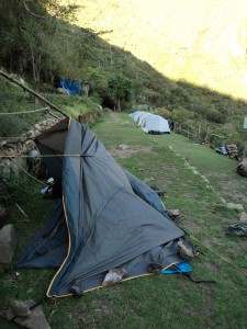 En esa extraña separación del grupo inicial, además de quedarnos durante una noche sin los palos de la carpa hubo otra terrible confusión que todavía no consigo entender, por mucho que me lo expliquen. Pero bueno, eso es un detalle menor a estas alturas: el caso es que nuestros compañeros olvidaron el techo de una de las tiendas de campaña en lo más alto del camino, es decir a 30 kilómetros de cualquier punto civilizado, más cuatro horas de buses y taxis desde Cusco, dónde nos encontrábamos.