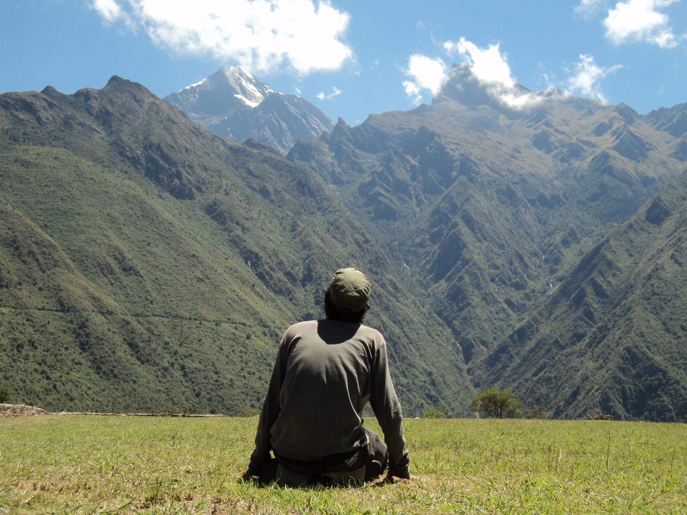 Y como yo estuve sentado en esa roca, me sentí como el rey del mundo en aquel momento. La experiencia fue maravillosa. No se oía ni un solo conato de ruido. Todo lo que te envuelve es espectacular. Estaba sobre una montaña de un color verde diferente a cualquier otro verde conocido, rodeado de montañas más altas que forman un círculo alrededor tuyo, el río la bordea más de 180 grados, creando una gran circunferencia alrededor, las nubes suben y bajan escondiendo y mostrando ese perfecto espectáculo inmóvil, el mismo que presenciaron los sabios incas, el mismo que decidieron convertir en lugar sagrado. Y como guinda del pastel, las ruinas que hacen malabares en las alturas circundando un cuidado césped verde.