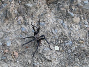 Nos encontramos a este bello animalito en mitad del camino. A su lado, una moneda para comparar el tamaño.