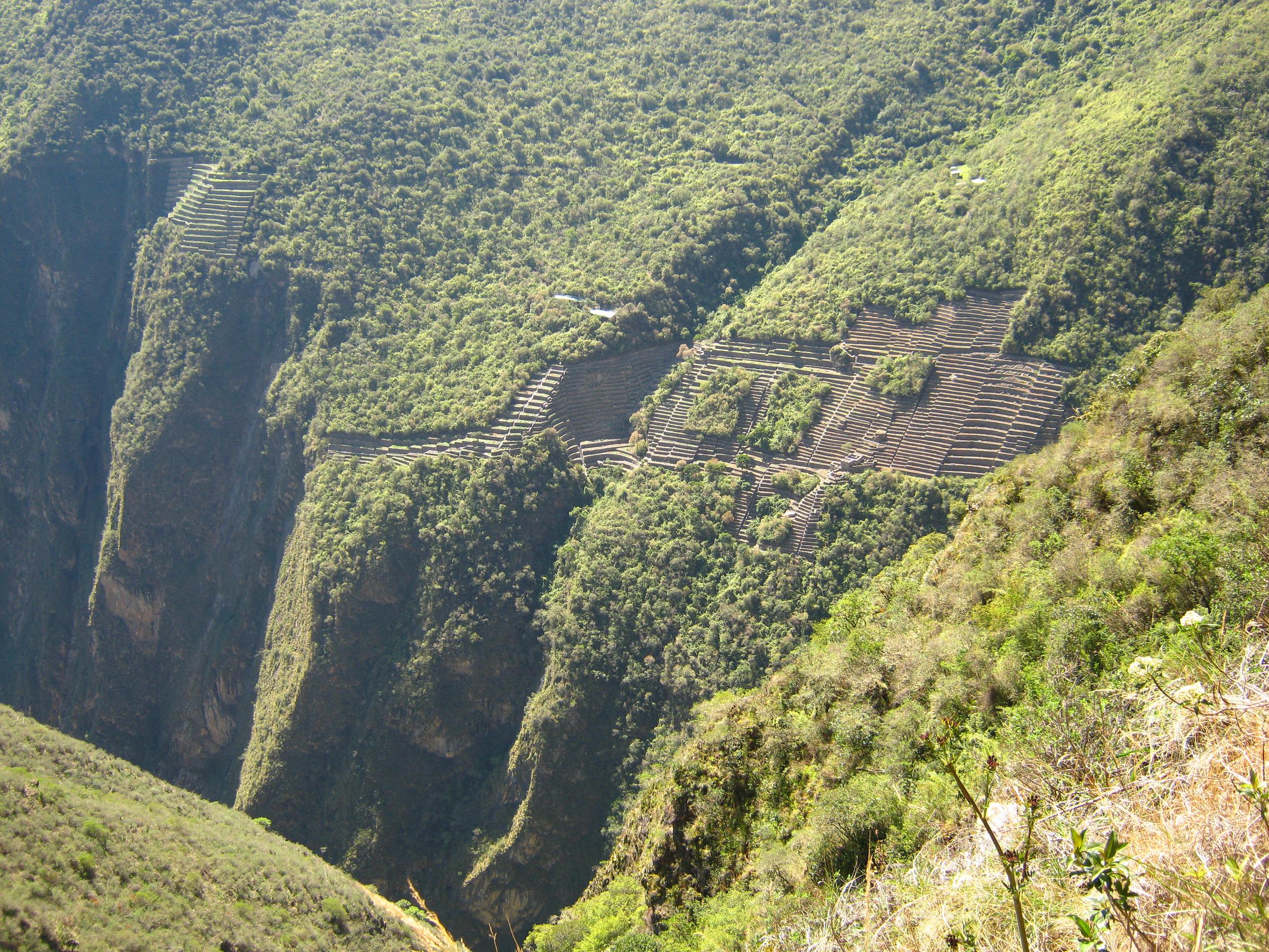 Yo estuve allí.Llegados al pueblo, un tramo de vuelta, hubo que hacerlo en un taxi lleno de trastos y de patatas...Pero como recompensa nos llevamos una bolsa.Construcciones incas al borde del precipicio.Los otros compañeros de viaje: los mosquitos.