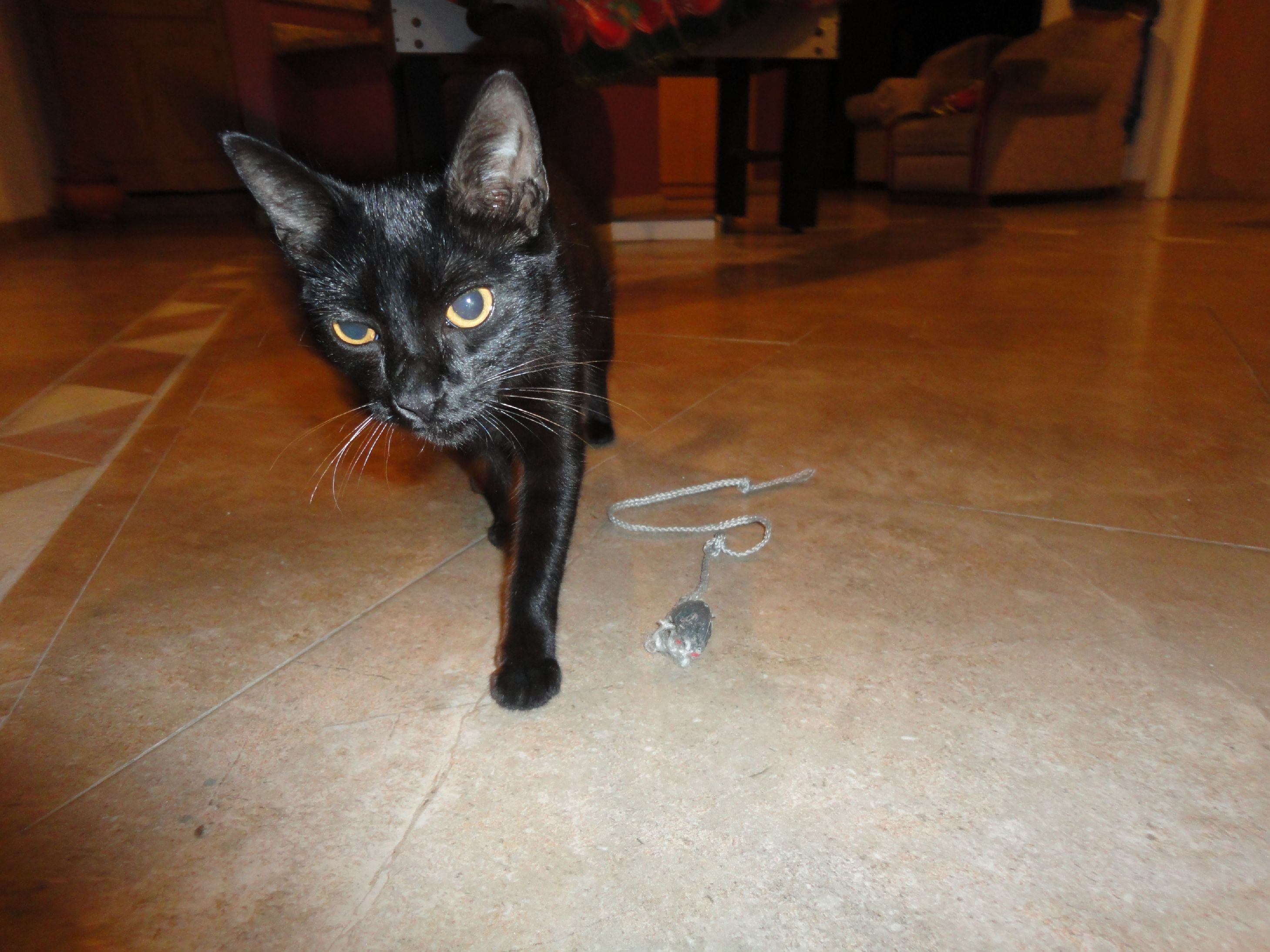 Por otro lado, el gato no ha perdido sus instintos naturales, puesto que destrozó sin piedad un ratoncillo de tela que le compraron.