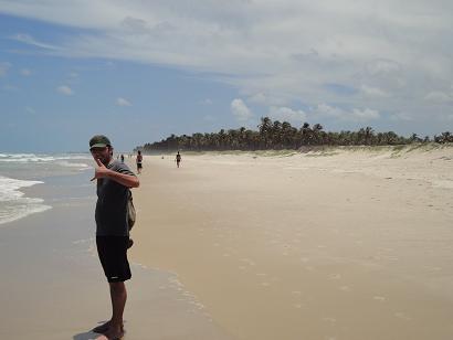 Pues a eso es a lo que hemos dedicado los dias de despues de Carnaval. En una lenta pero segura bajada hacia el sur hemos encontrado a nuestra familia y hemos hecho de autobuses atestados de gente nuestro particular monovolumen para ejercer el dominguerismo. Las diferencias entre Espanha y Brasil son, para bien y para mal, enormes. Asi que en vez ir a Lloret de Mar, hemos paseado nuestros tostados cuerpos por playas de esas de postal: arena blanca, palmeras, cocos, mulatas, surf…