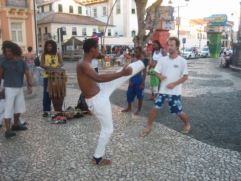 Tras la visita a estas playas de categoria «idilica» con coche alquilado incluido, pusimos el ancla en Salvador do Bahia, hasta hace unos dias solo conocida por mi por ser la ciudad de Carlinhos Brown y ahora por tener un centro historico fantastico, con calles adoquinadas y peatonales, con restaurantes monisimos con las mesas afuera (no ens ho podem permitir eh, mes de 2 euros), con agradabilisimas tardes-noches tomando cervezas en terracitas con lugarenyos y nuevos companyeros que se van cruzando en nuestro camino.
